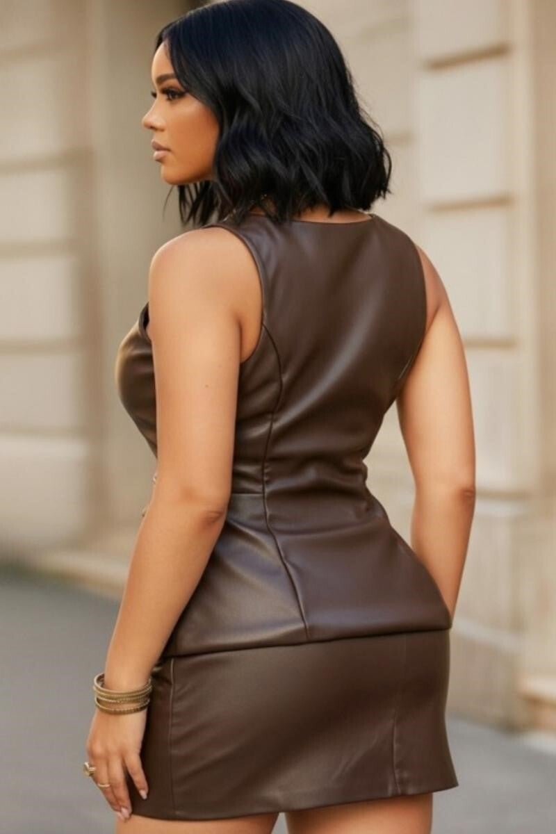 Turn up the heat in this sleek faux leather skirt set made for the woman who knows she's the moment.