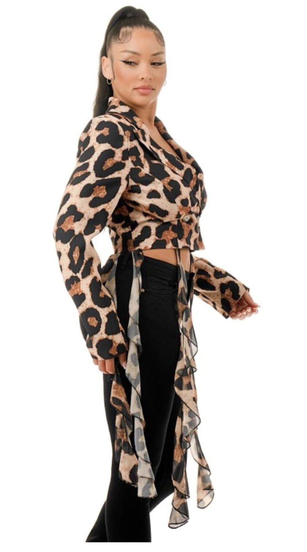 Make a statement without saying a word. This spotted jacket brings the perfect mix of fierce and fashionable. Lightweight yet structured, it's perfect with jeans or wear with a skirt.
