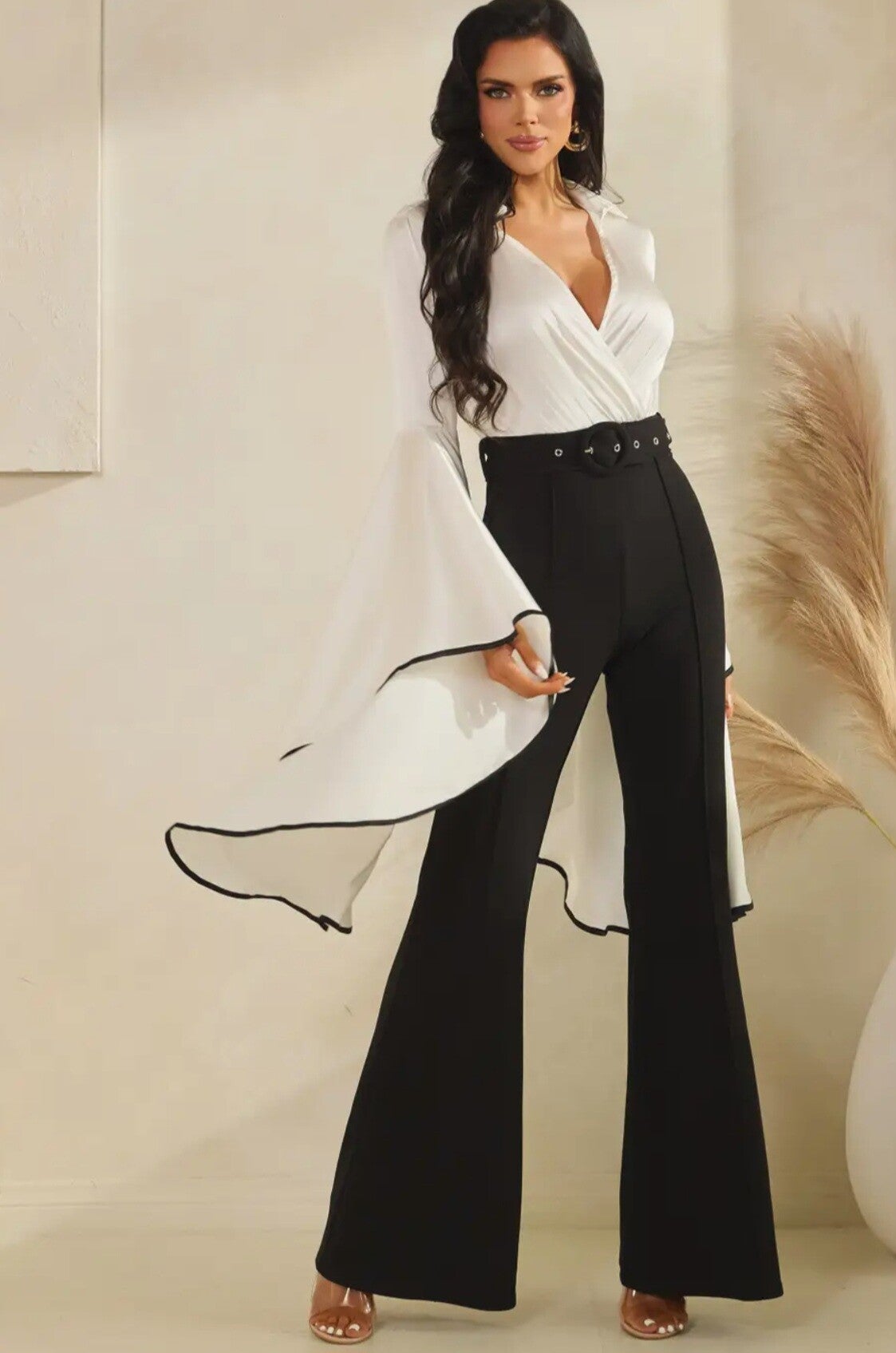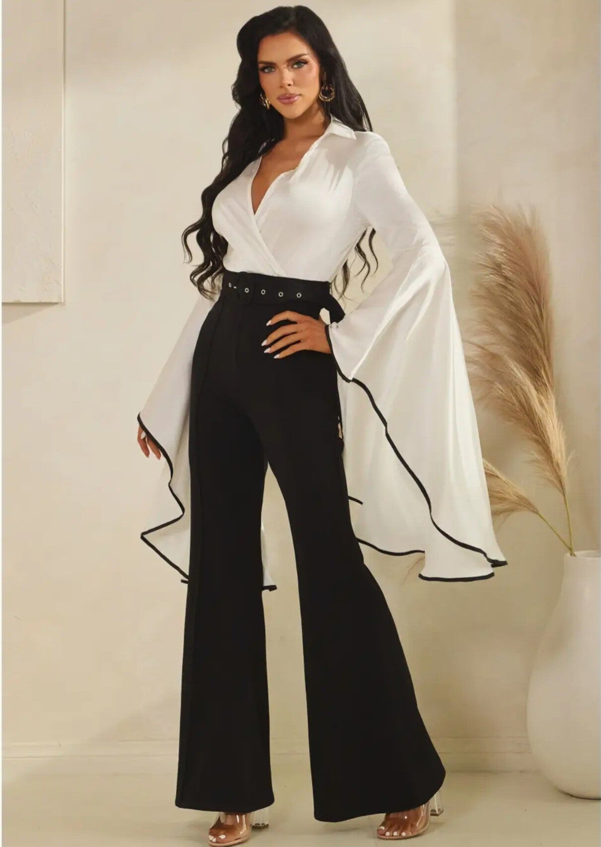 Long bell sleeves and a curve-hugging silhouette combine in this sexy Jumpsuit designed to turn heads at any event.