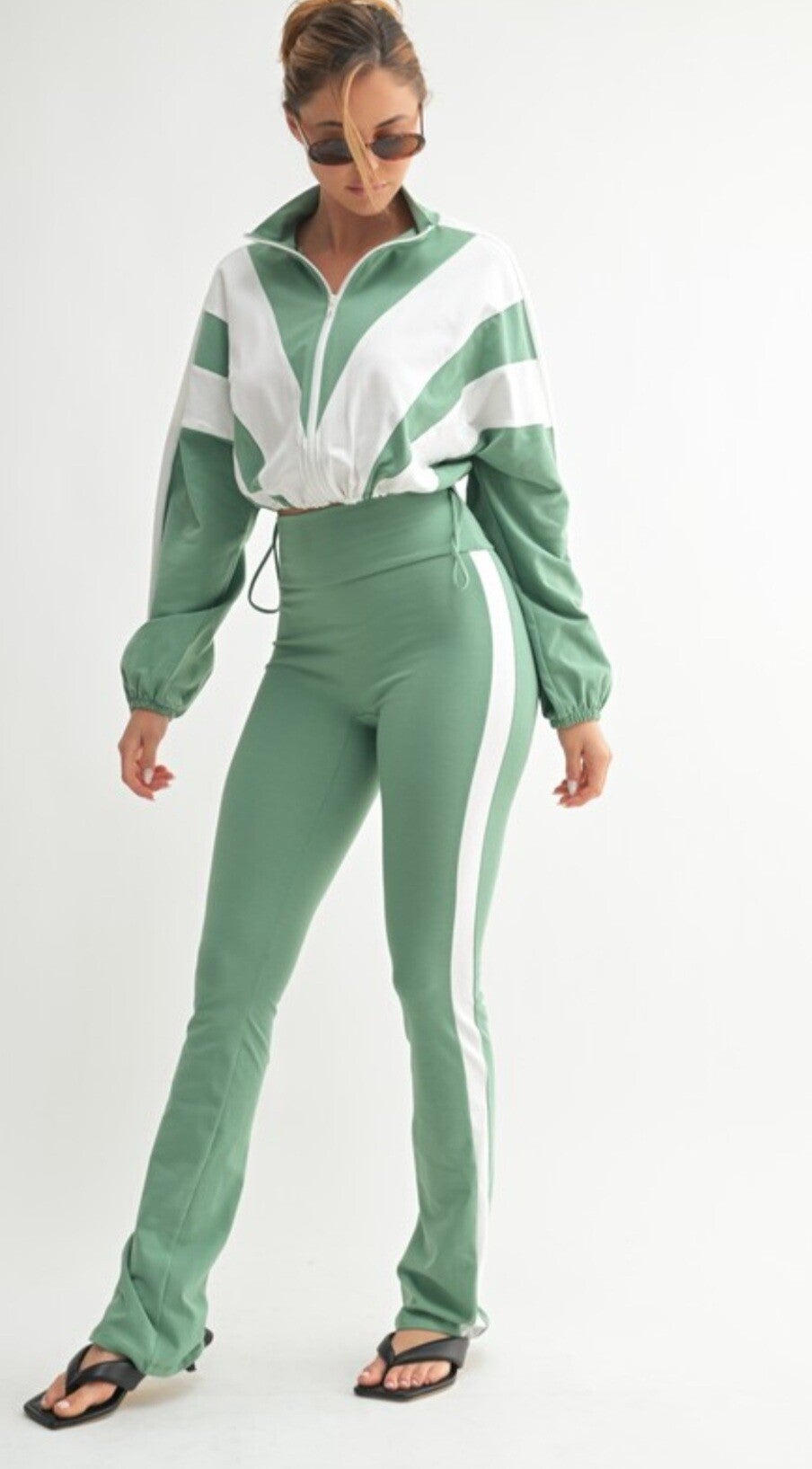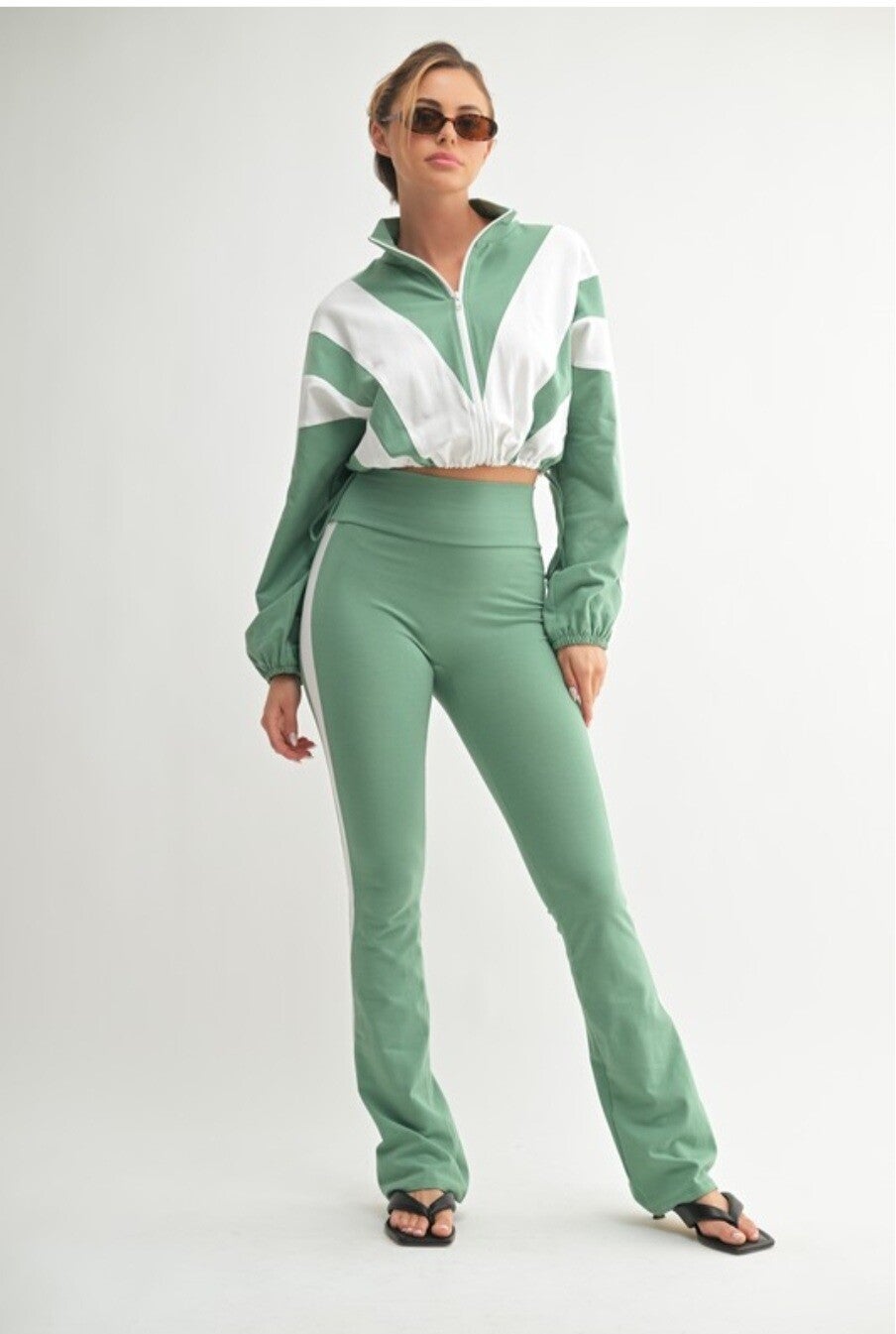 This matching jacket and pants set us designed to move with you-whether you're running errands, hitting the gym, ir lounging in style. Elevate your activewear game with a look that honors strength, style, and legacy.